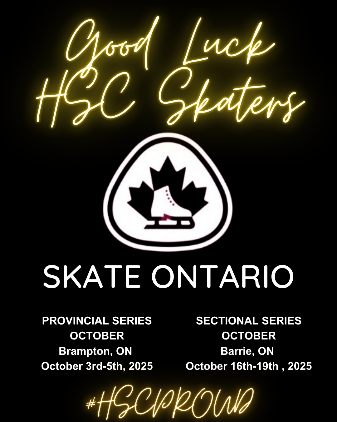 Wishing all of our HSC skaters the best of luck this month as they travel to a variety of events to showcase all of their hard work and new skills this competition season.