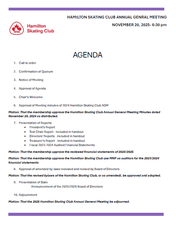 2025 HAMILTON SKATING CLUB AGM AGENDA