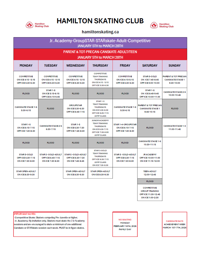 STAR and Competitive skaters who register for 3 or more sessions will receive Thursdsay's Team Training session and jump class FREE.